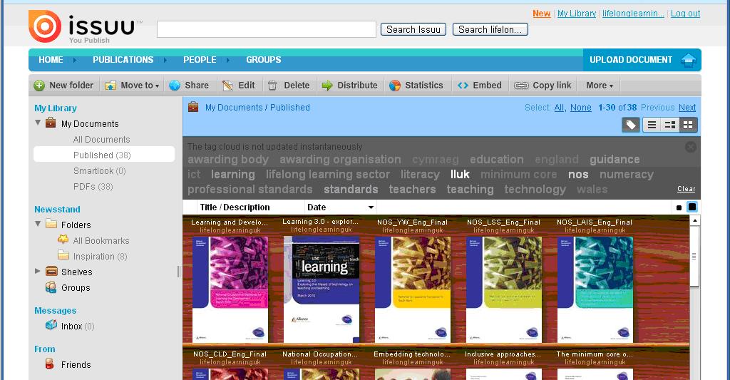 Issuu is a site that enables you to publish pdf documents in a really attractive format. It will automatically create a library of your documents as if you’re looking at them on a bookshelf. Gone are the days when your website had to be a list of boring links to pdf downloads. This site also enables you to ’embed’ your uploaded pdfs in Issuu-format on your own website. See how I did this with the Learning 3.0 report on Lifelong Learning UK’s website: http://www.lluk.org/learning3.htm