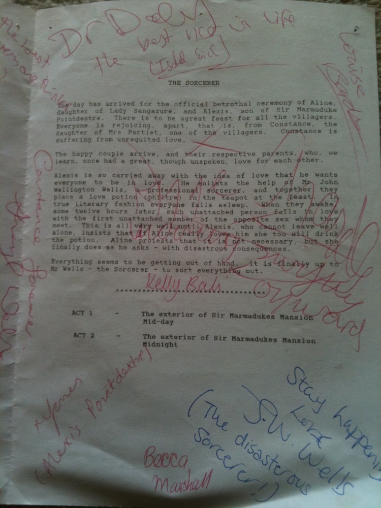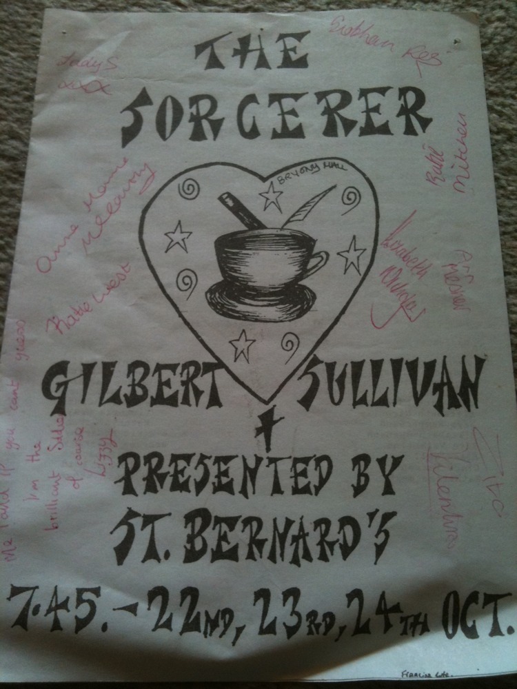 I designed the picture on the front. We did this very obscure Gilbert & Sullivan operetta because all the well known ones weren’t available in the library! The programme is signed by all the cast and crew. I think it was in 1992 but it could have been 1993. I was in the chorus. I can still sing quite a lot of it “now to the banquet we press now for the eggs and the ham, now for the mustard and cress and now for the strawberry jam, now for the tea of our host now for the rollicking bun….”