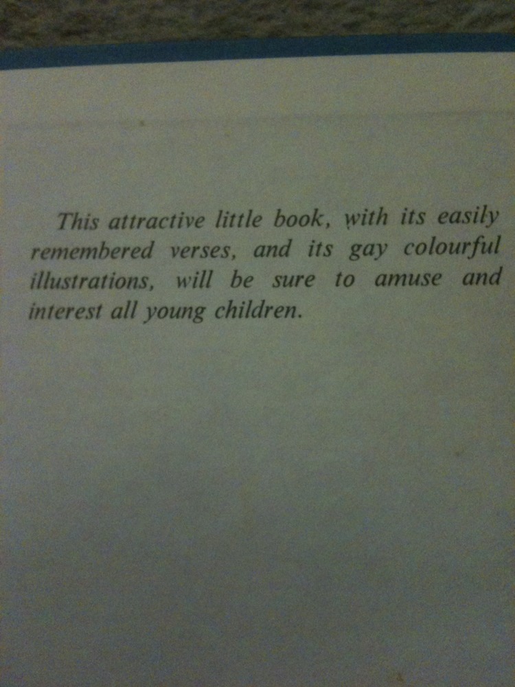 This Ladybird book gets an entry all of its own. This is a terrible rhyming book about different anthropomorphised vehicles. My mother read to Luke and me every night. Very occasionally my dad would read to us and we always asked for this because Dad would do silly accents for each vehicle. It’s one of the few books we remember having read to us. My poor mum never got any thanks where my dad would get squeals of delight whenever he read to us once in a blue moon! I remember seeing a dedication in the front of a book I read once which really holds true for me too: