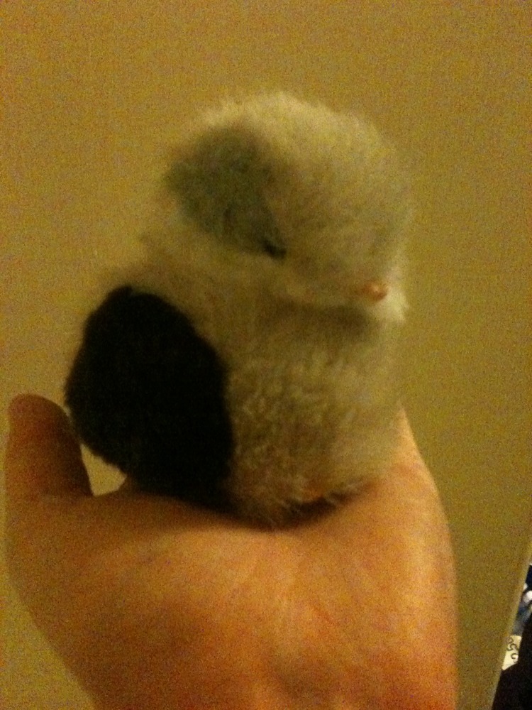 I got this for Easter one year, it sadly doesn’t work any more but it had a battery in it and responded to heat. So you put it on your palm like this and it would cheep. Very cute!