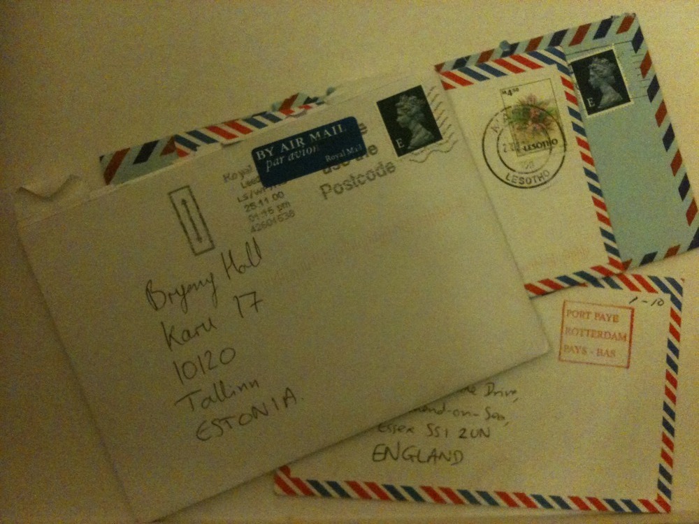 I was in Estonia and my then boyfriend (now husband) was both in the UK and then for 3 months in Lesotho. I think it was a very important time in our relationship. As a friend once said to me ‘all relationships should have a correspondence period’!