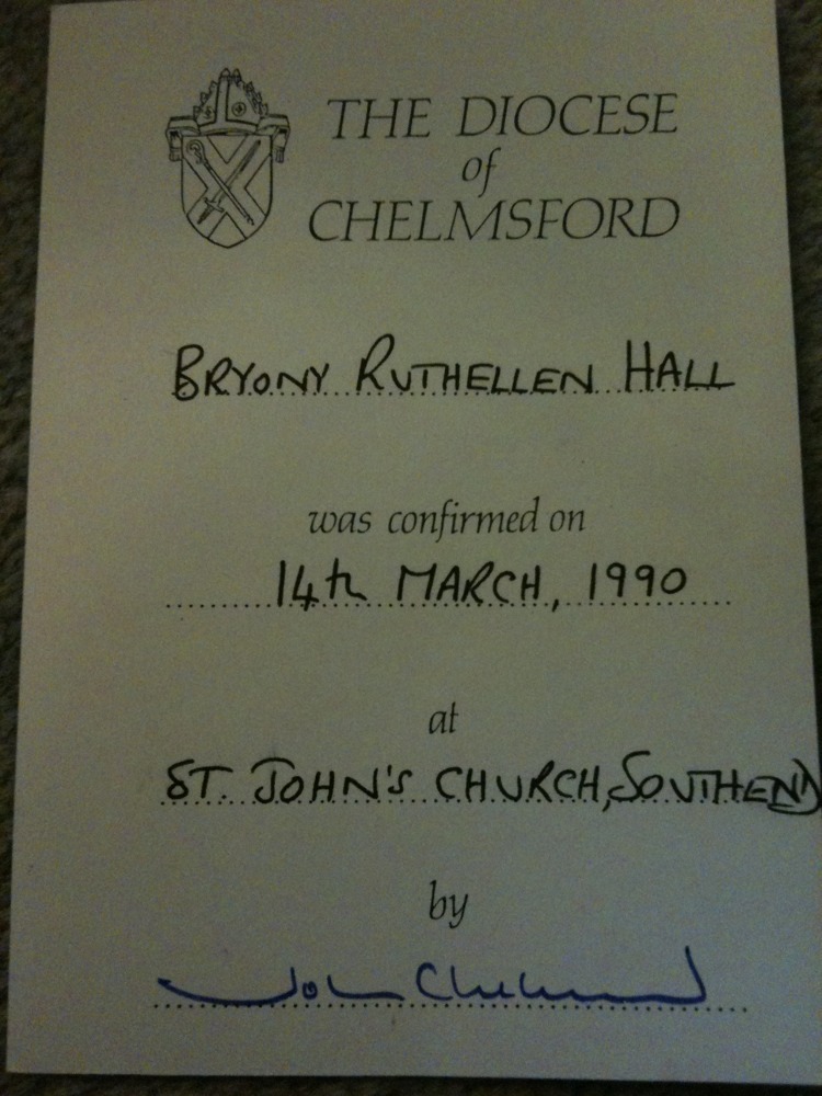I was confirmed by the Bishop of Chelmsford on 14th March 1990. I remember one of the hymns was Our God Reigns by Graham Kendrick.