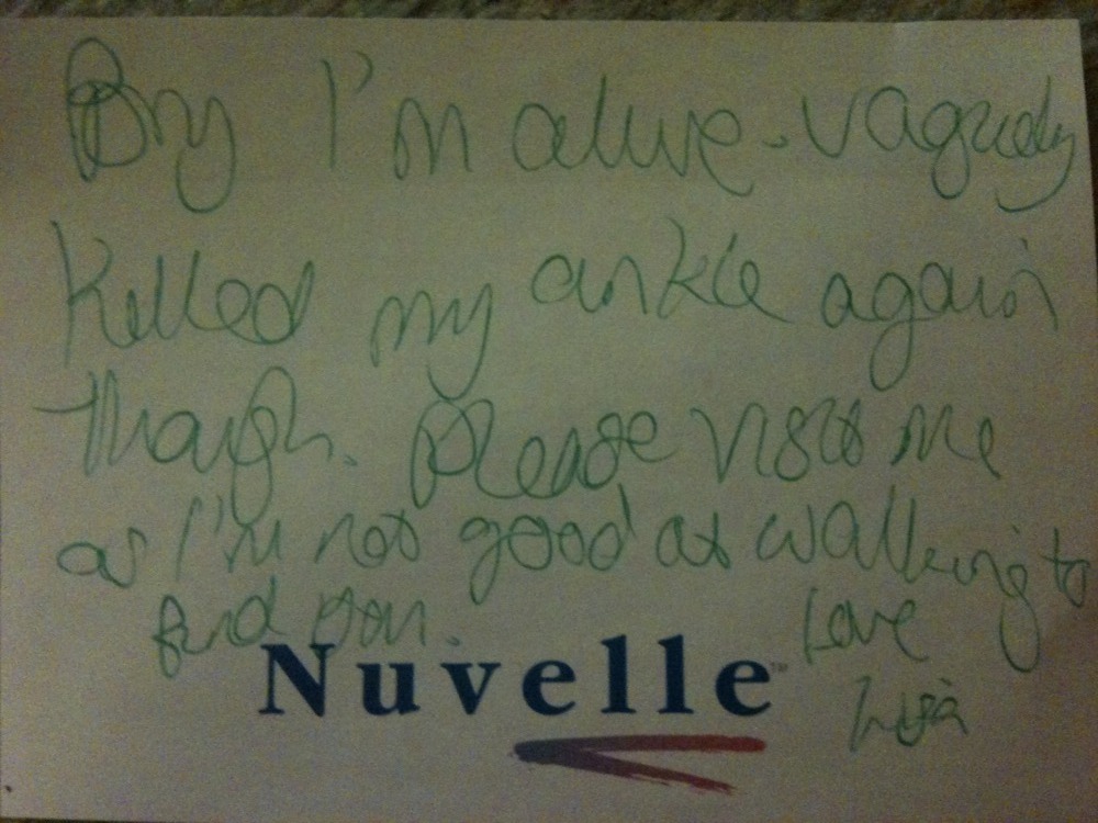 No one had a mobile phone when I was at university. In order to leave notes for each other we used post it notes on our bedroom doors. I’m so glad I was daft enough to save these. My favourite is: ‘having an “exams have finished lie-in”! Getting up in time for 15 to 1’ –