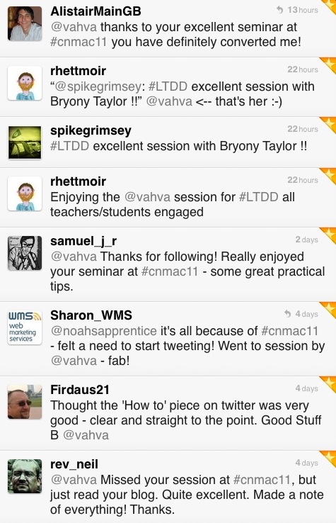 “I attended the e-conference at Huddersfield yesterday and I just wanted to say a big THANK YOU for being such an inspirational speaker and keeping us motivated! I came back buzzing and excited about getting involved in everything so now I need to step back and decide which first!”